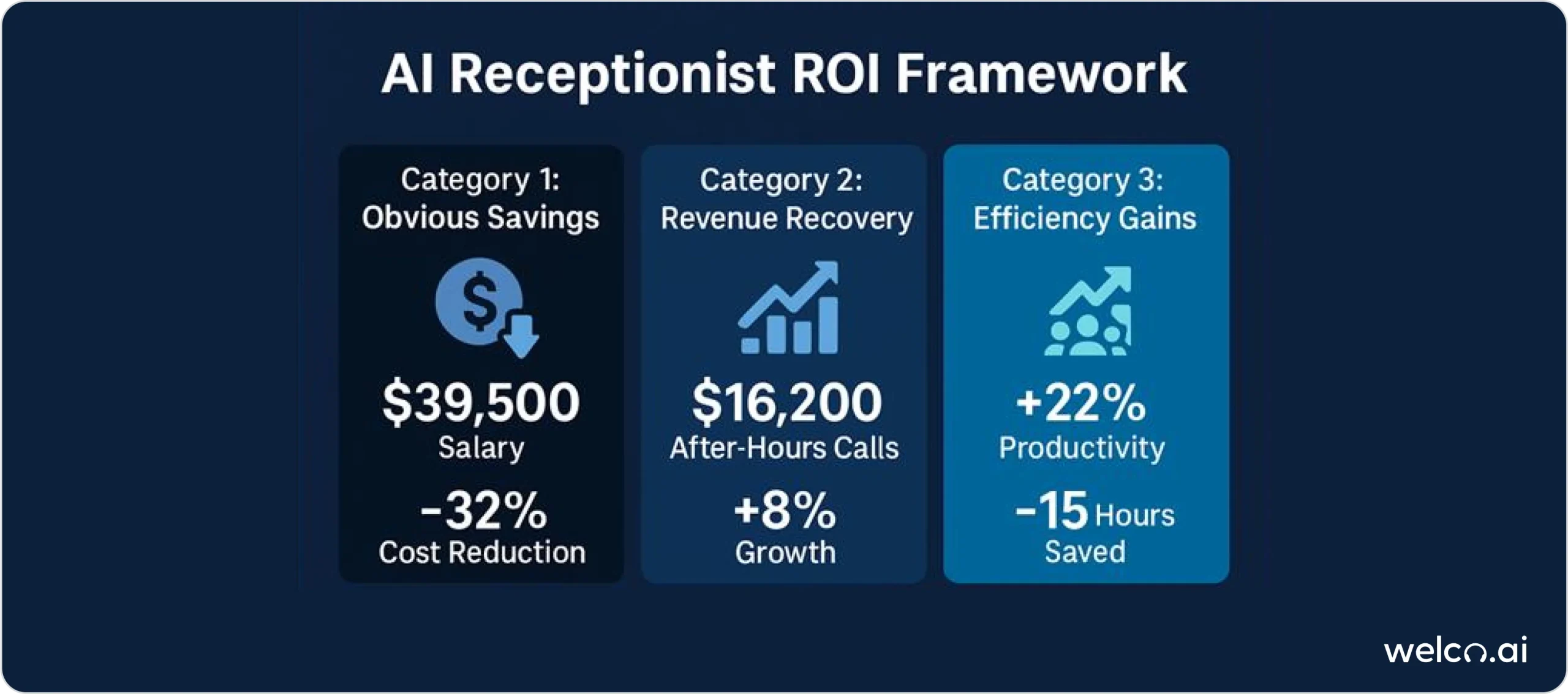 AI reception ROI comes from three sources, not one. If you’re only measuring salary replacement, you’re missing most of the value.