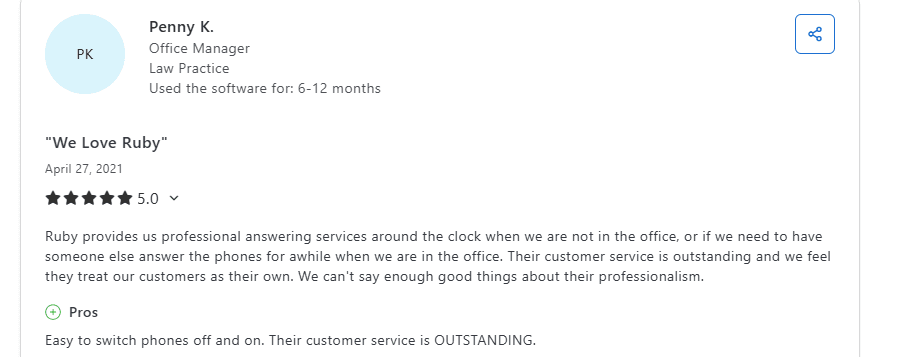 Ruby Virtual Receptionist Reviews: Pricing, Features, Pros and Cons