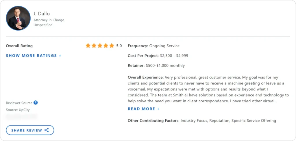 These ratings highlight Smith.ai’s consistent performance and customer satisfaction — but as with any service, user experiences vary.