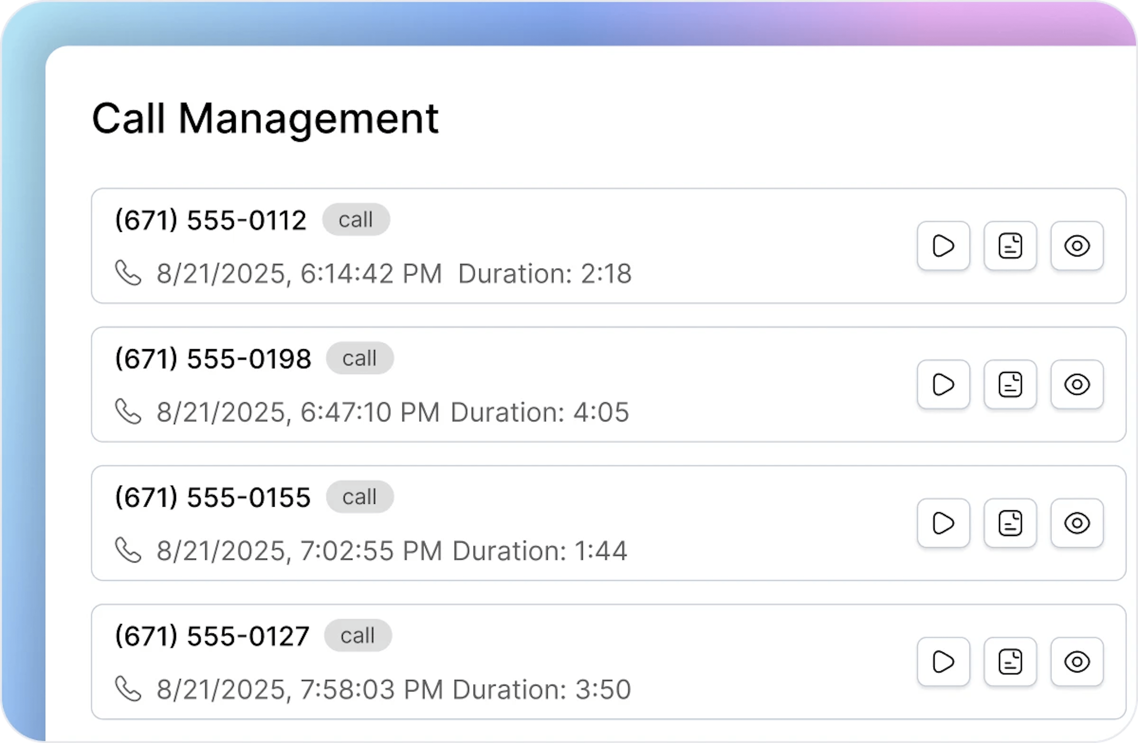 Connect Welco’s temporary answering service with your calendar, CRM, and phone system during coverage periods. Appointments sync automatically while coverage is active, lead information is logged instantly, and call records are transferred to your systems in real-time. Your temporary AI receptionist works with the tools you already use—no manual data entry.